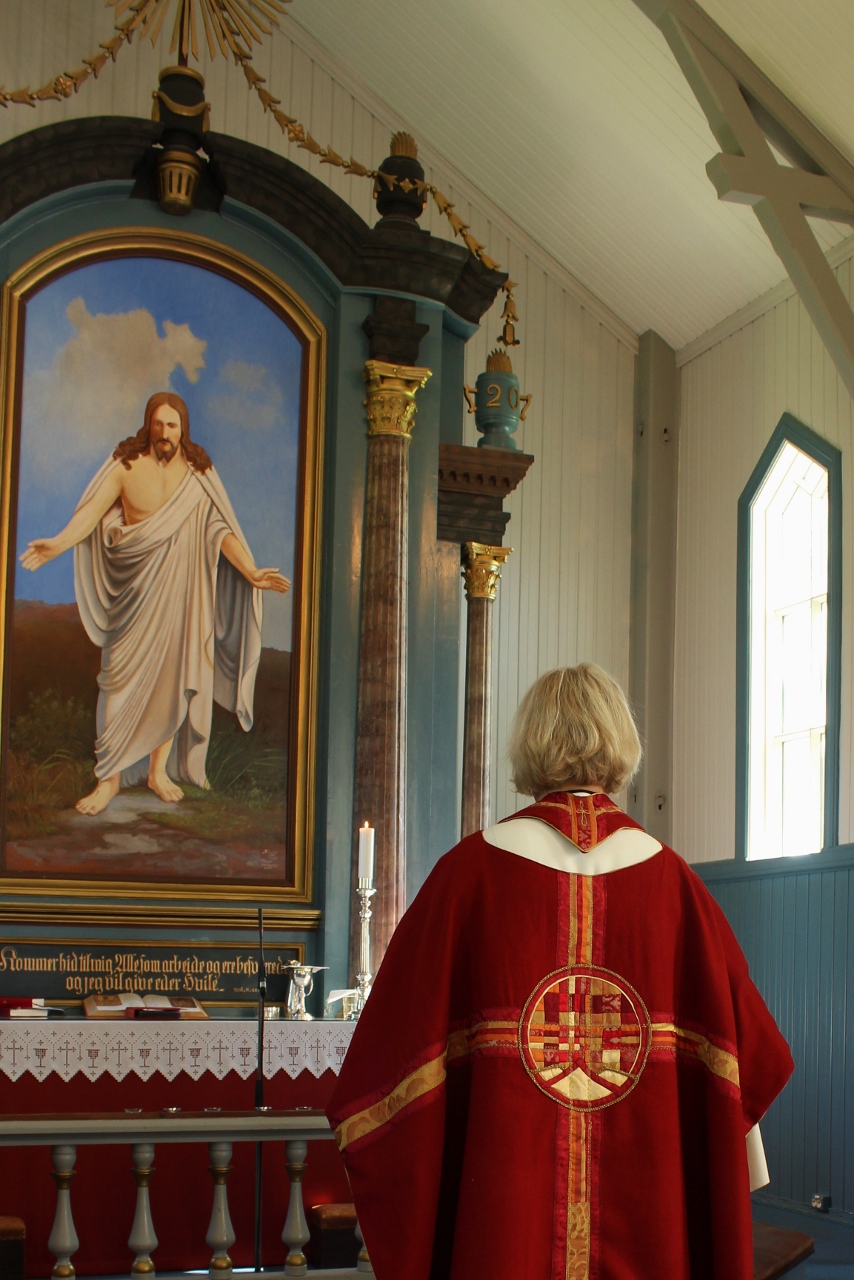 This set is red, the color of blood, the color of martyrdom, the color of fire, the liturgical color for Pentecost, for ordination, for the day of the apostles. The texts speak about being a witness, about martyrdom, about baptism by fire and by the holy spirit. To me, most of all it speaks about the God who walks with each and one of us through all this. Be not afraid, one texts says. I will not leave you fatherless, another tells us. Yet another, I will stay with you to the end of the world.